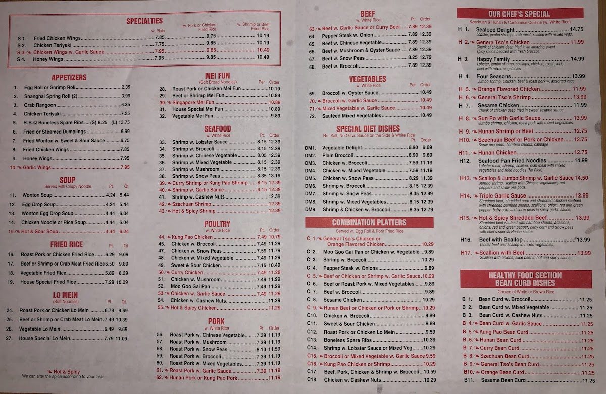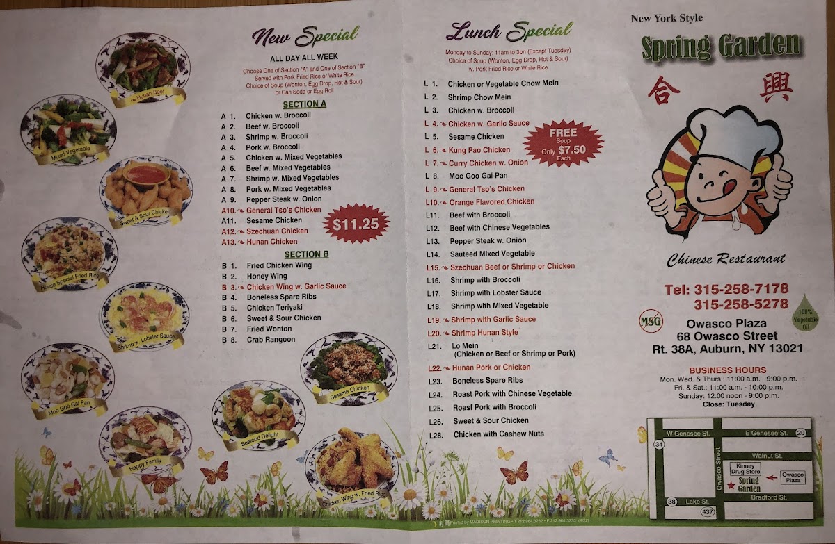 The menu at Spring Garden offers a straightforward selection of classic Chinese dishes, perfect for those seeking comforting, familiar flavors in a relaxed setting. Whether you're stopping by for a quick lunch or a casual dinner, you’ll find options that are both satisfying and approachable.